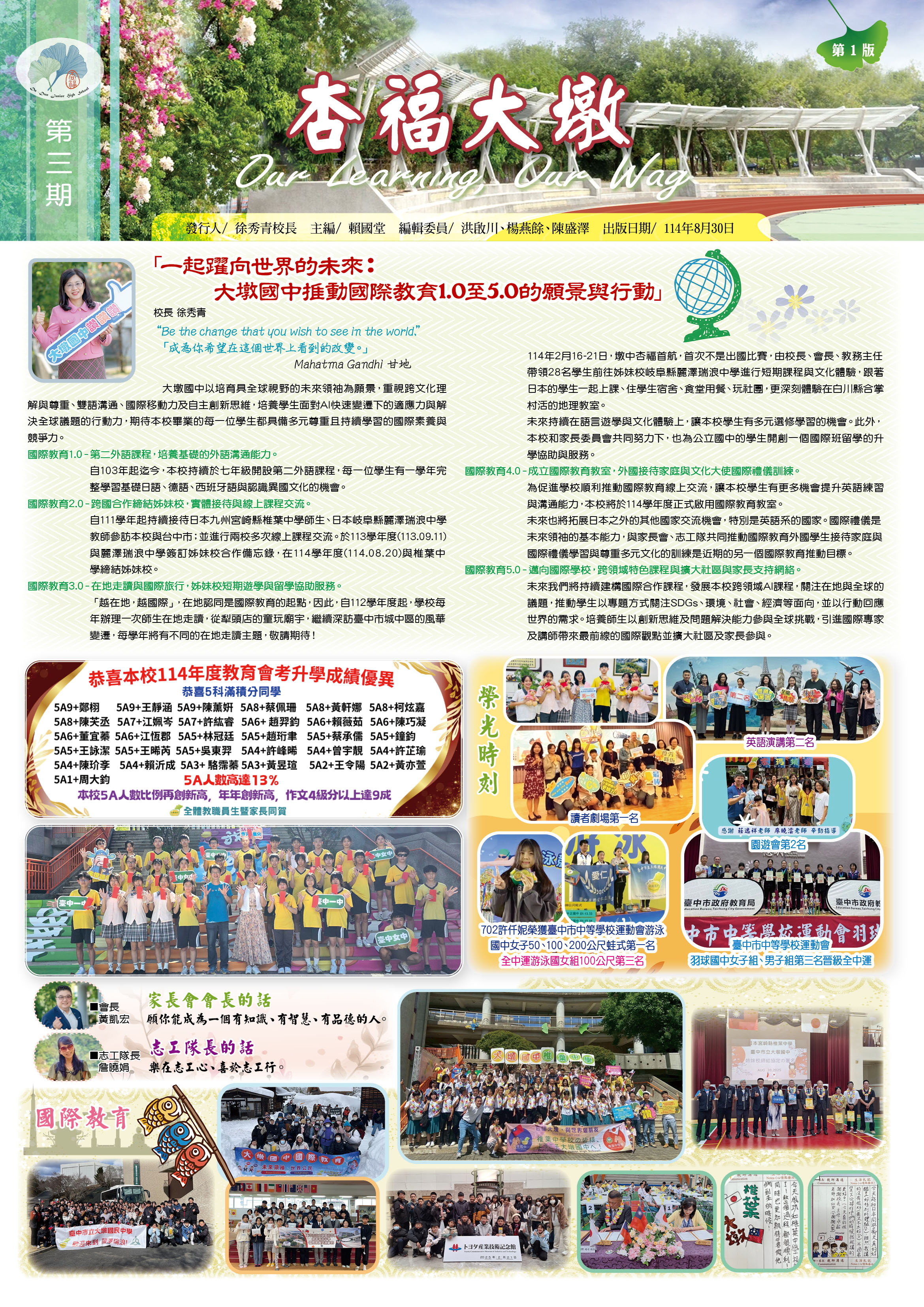 即日起新增同心里、文心里全里為本校學區,國一新生(應屆小六生)報到日為113年4月21日(日)